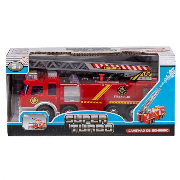 Divirta-se enquanto faz o bem ajudando aqueles que precisam e seja o herói do dia com a ajuda do super caminhão de bombeiros com luz. Esse caminhão é cheio de surpresas e irá te surpreender muito, o mesmo possui luzes que auxiliam nos resgates, escada com regulagem de altura que gira até 360° graus e além de tudo consegue lançar água a longa distância. O caminhão possui uma bomba exclusiva para o lançamento da água embaixo dele, assim você consegue lançar água de verdade e resgatar a todos que precisam da sua ajuda. Encare todas as aventuras que surgirem ao lado do seu super caminhão de bombeiro.
